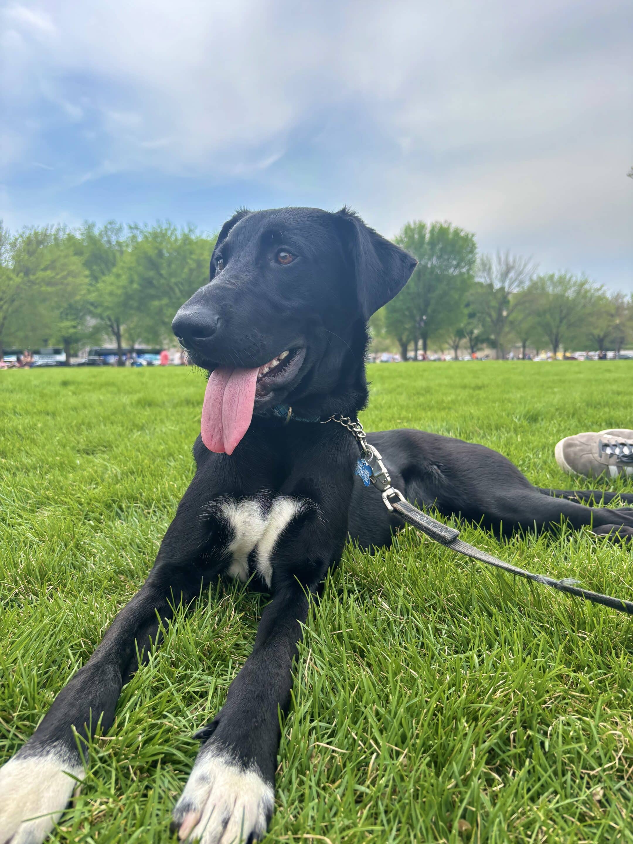 Cliff was a big fat (he’s actually very slender) foster fail. We began fostering him last March of last year and adopted him that April. We don’t know his birthday, but his gotcha day is April 18th, and he’s probably about 2 years old. His white chest and paws mean he permanently dons a tuxedo. He is the sweetest boy, and there’s very little he doesn’t love. He has many special talents, including turning anything found on the ground into a snack, active/vocal dreaming, disregarding personal space, having the world’s longest tongue, and costing us a fortune on medical care. He also has many personalities, responding to Cliff, Clifford, Bubs, Bubbas, and Sir Clifforington (among others). We don’t believe his DNA test results and are convinced he’s a lab mix. His daily walks, rain or shine, are some of his favorite times of day!